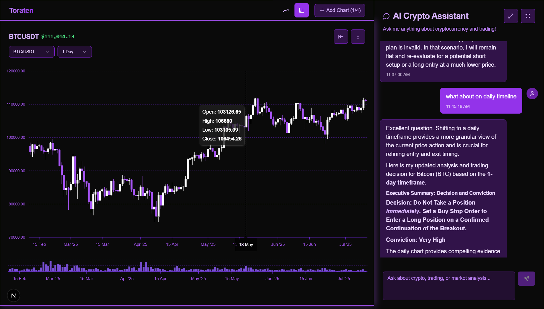 Experience the power of AI-driven crypto analysis with our comprehensive trading interface